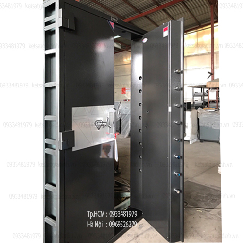 • Cánh cửa Chế tạo từ thép C45 nguyên tấm dày 16mm, đảm bảo độ bền và chống cạy phá hiệu quả.3 bản lề nổi làm từ thép dày, tăng độ chắc chắn.