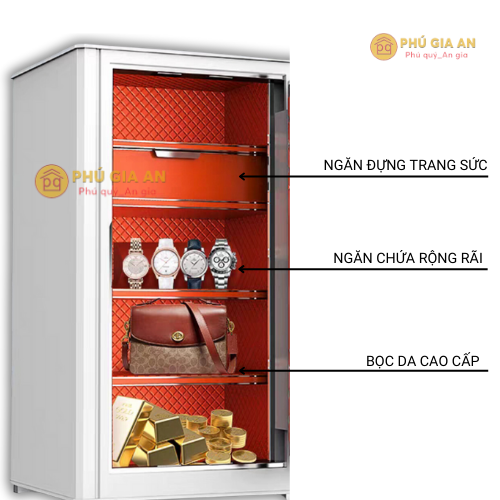 Không gian bên trong của Bofa BJ-85TG được bọc da cao cấp với họa tiết dập nổi, giúp bảo vệ trang sức, đồng hồ hay giấy tờ quan trọng khỏi ẩm mốc và trầy xước.