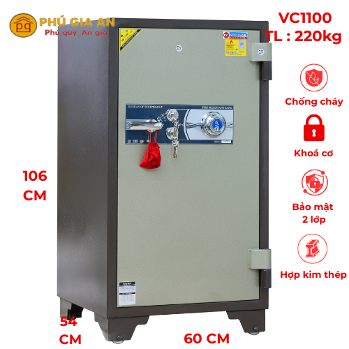 Thông số kỹ thuật két sắt chống cháy VC1100 khóa cơ đổi mã