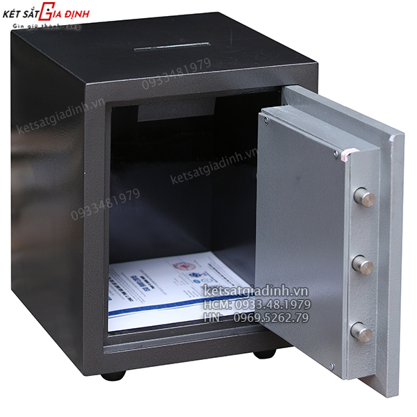 • An toàn – chống trộm: Két được trang bị 01 ổ khóa chìa 4 cạnh chống sao chép cộng 01 khóa mã cơ siêu bền có nhiều rãnh giả chống dò mã.