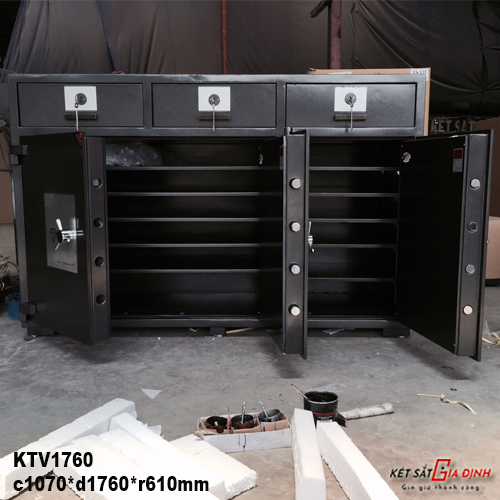 Sự khác biệt của dòng KTV1760 nằm ở kết cấu vật liệu và thiết kế nội thất thông minh, phục vụ riêng cho việc cất trữ khay vàng và tiền mặt số lượng lớn.