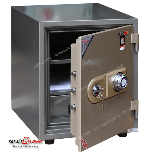 Mô tả chi tiết thông số kỹ thuật Két sắt chống cháy Goodwill GC51 khóa cơ báo động:
