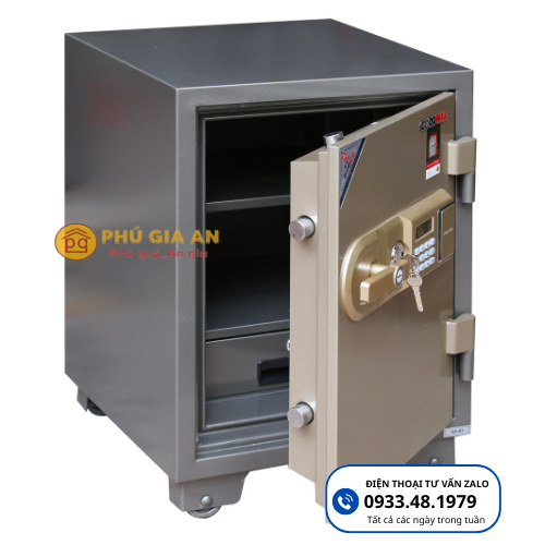 • Hệ thống khóa:Khóa mã điện tử có báo động, kết hợp khóa chìa bi cao cấp.Mật mã điện tử cài đặt tối đa 8 số theo ý muốn.Bàn phím tự động sáng đèn khi thao tác.Hệ thống cấp nguồn linh hoạt, có thể lắp pin bên trong hoặc bên ngoài két.