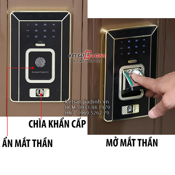 • Khóa chìa cơ khẩn cấp – giúp mở két khi quên mã số hoặc hết pin.