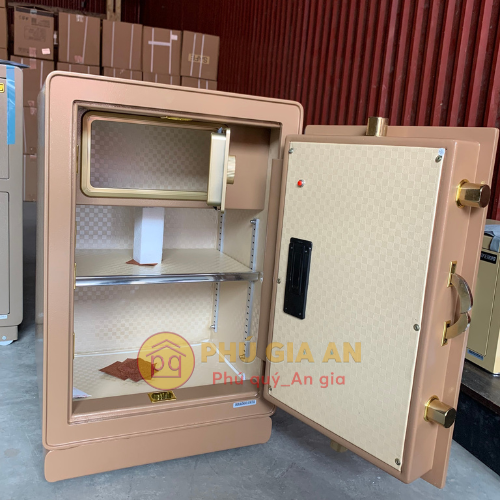 • Ngăn phụ bên trong két có khóa điện tử riêng biệt, đóng vai trò như một chiếc két mini thứ hai bên trong két lớn, giúp bảo quản trang sức và giấy tờ quan trọng một cách biệt lập. Đợt chia di động linh hoạt giúp gia chủ dễ dàng sắp xếp giấy tờ, tài sản theo nhu cầu sử dụng. Nội thất được bọc cao cấp, sang trọng, nâng tầm giá trị sử dụng.