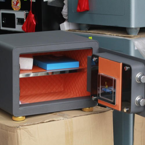 Không gian bên trong két được chăm chút tỉ mỉ với lớp bọc da sang trọng. Điều này không chỉ nâng tầm giá trị sản phẩm mà còn giúp bảo vệ trang sức, đồng hồ, hay các vật dụng quý giá khỏi nguy cơ trầy xước khi lưu trữ. Kệ chia ngăn di động giúp tối ưu hóa không gian, dễ dàng để vừa giấy tờ khổ A4.