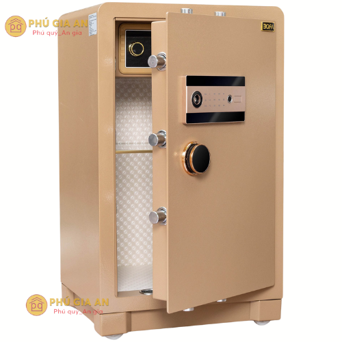 • Phương thức mở két: Kết hợp linh hoạt giữa khóa chìa, vân tay và mã số điện tử. Hệ thống bảo mật kép này cùng với cảnh báo động giúp chống trộm hiệu quả cao.