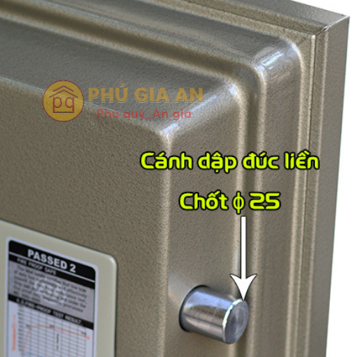 • Cánh cửa và thân két: Dày, thép 2 lớp với ruột đúc đặc kết hợp vật liệu chống cháy cao cấp đạt tiêu chuẩn quốc tế (CE, ISO, SP, JIS). Cánh cửa có hệ thống chốt an toàn, thẩm mỹ, giúp tăng độ chắc chắn và khả năng chống cạy phá.