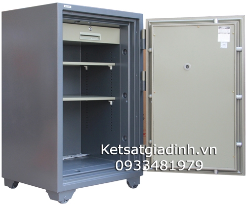 • Cánh cửa và thân két từ thép 2 lớp, kết hợp với ruột đúc đặc vật liệu chống cháy cao cấp theo tiêu chuẩn quốc tế (CE, ISO, SP, JIS). Cánh cửa được trang bị hệ thống chốt an toàn, tạo độ chắc chắn và bảo mật cao, giúp chống cạy phá hiệu quả.