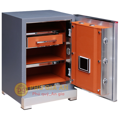 • Cửa két trang bị chốt đa điểm trên cả 4 mặt, tăng cường an toàn.Có thể bắt vít cốđịnh vào tường, chống di chuyển