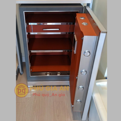 • Cửa két trang bị chốt đa điểm trên cả 4 mặt, tăng cường an toàn.Có thể bắt vít cốđịnh vào tường, chống di chuyển
