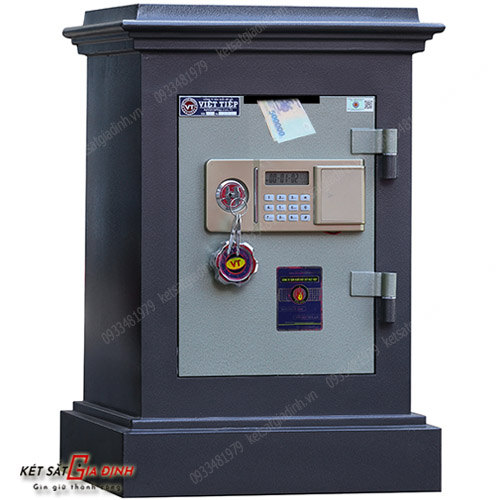 Mẫu két sắt điện tử việt tiệp này được trang bị công nghệ bảo mật kép. Ổ khóa chìa 4 cạnh chống sao chép kết hợp cùng bảng mạch điện tử cho phép người dùng thay đổi mật mã linh hoạt theo ý muốn (tối đa 8 ký tự).
