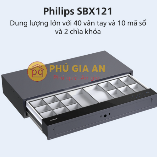 Khác biệt hoàn toàn với các mẫu két đứng truyền thống, Philips SBX121 được mệnh danh là đỉnh cao của dòng két sắt ngăn kéo (drawer safe). Sản phẩm hướng tới trải nghiệm người dùng tinh tế và bảo vệ tối đa cho các loại trang sức, phụ kiện đắt tiền.
