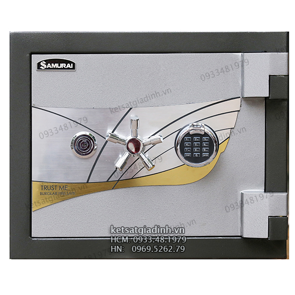 • Cửa két làm từ thép Carbon nguyên tấm dày 12mm (theo tiêu chuẩn JIS Nhật Bản), có độ 01 ngăn kéo có khóa chìa