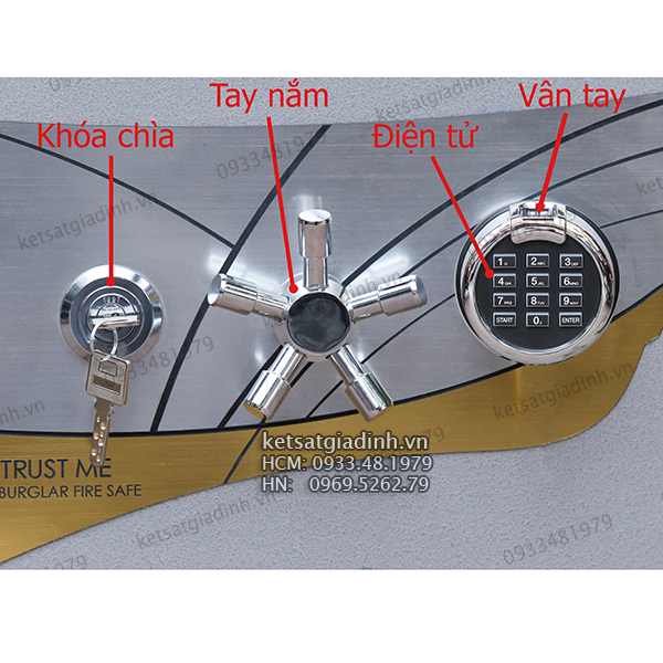 • Cách 1: Dùng chìa khóa + vân tay hoặc mật mã điện tử.
