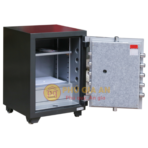 • Thân két được chế tạo từ hai lớp thép mạ điện GA, kết hợp với đá, thép hạt và vật liệu cách nhiệt có khả năng chịu nhiệt cao, đồng thời đảm bảo tính chống đục phá vượt trội.