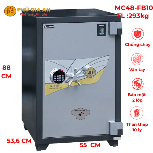 Két sắt thân thép dày 10ly MC48-FB10 vân tay điện tử kết hợp khóa cơ và App thông minh 2024