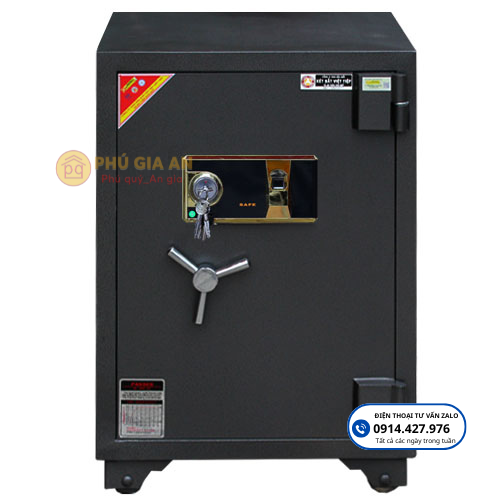 – Cách mở: xoay khóa chìa qua phải – mở vân tay – kéo tay nắm lên mở két.