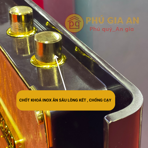 • Cánh cửa từ thép Cacbon dày 10mm.Bản lề chìm trục Inox tròn kết hợp 2 chốt khóa mạ vàng phi 30mm.Góc mở 120 độ, tiện lợi khi lấy & để đồ, mang ý nghĩa phong thủy tài lộc