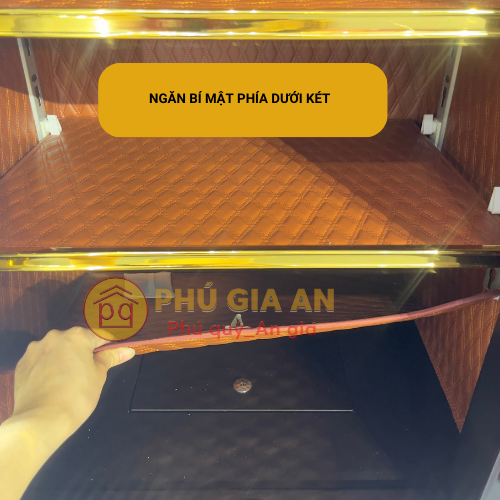• Khoang chứa 3 ngăn lớn, phù hợp cất giấy tờ, tiền bạc, vật có giá trị . Hộc kéo bọc nhung dành riêng cho trang sức 1 đợt chia ngăn di động . Ngăn hầm bí mật ở đáy két, sử dụng khóa chìa cơ riêng