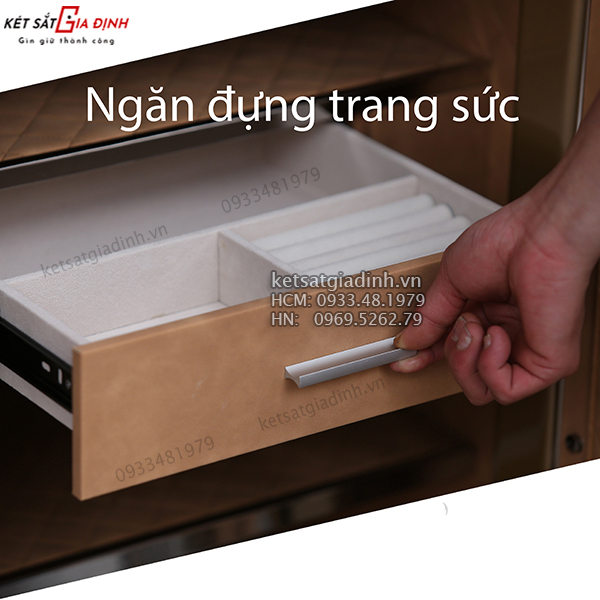 Nội thất bọc da cao cấp và ngăn trang sức của két sắt Aifeibao Cấu tạo thép đúc nguyên khối dày dặn chống khoan cắt