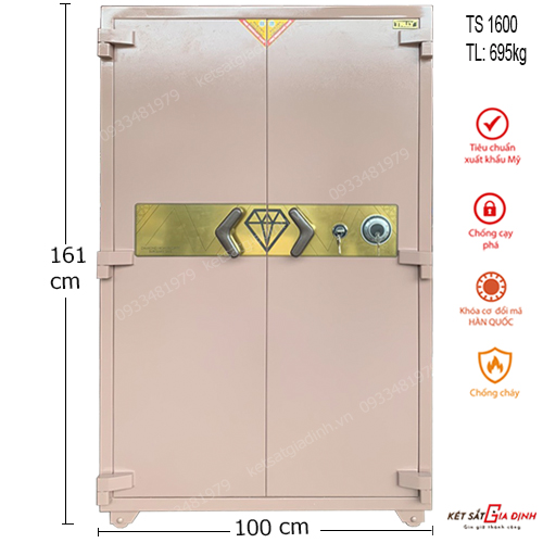 - Tính năng: chống cháy hơn 1030 độ trong vòng 120 phút (Lưu ý: đây là mức chống cháy cao nhất của các dòng két sắt , kể cả két nhập khẩu Hàn Quốc) , chống nước, chống cạy phá.