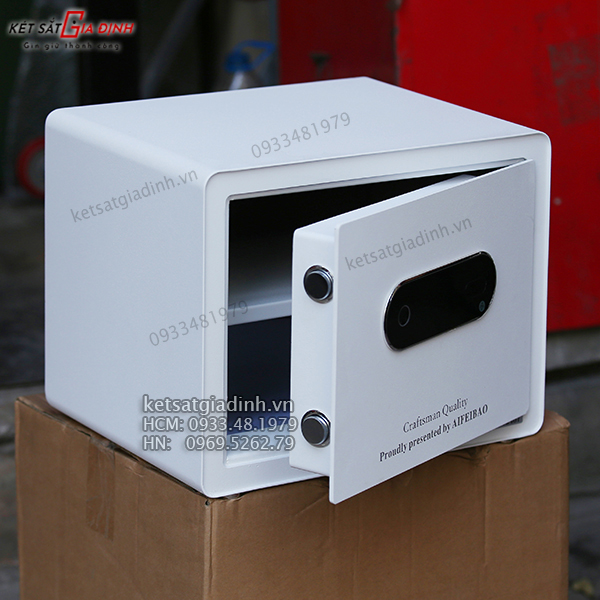 két sắt kết nối app điện thoại thông minh két sắt màu trắng hk-d30w-am tinh tế chốt khóa đúc đặc an toàn chống cạy phá bảng điều khiển vân tay điện tử hiện đại