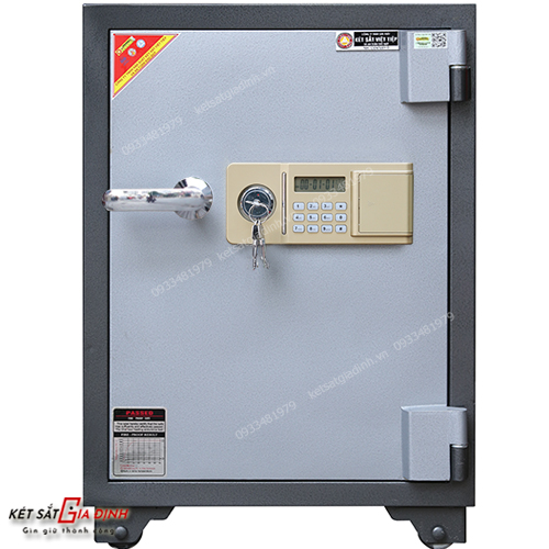 • Két được trang bị mã khóa điện tử công nghệ cao với độ bền vượt trội, tích hợp hệ thống báo động âm thanh trong hai trường hợp: nhập sai mã liên tiếp 3 lần hoặc khi két bị đập phá, dịch chuyển.
