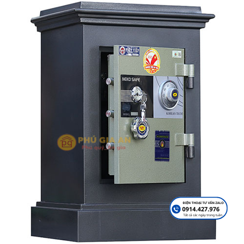Cánh cửa két cũng được đổ ruột chống cháy, đảm bảo tính an toàn tối đa trước hỏa hoạn. Hệ thống chốt khóa làm từ thép đặc 100% ăn sâu vào lòng két giúp tăng cường khả năng chống cạy phá và chống trộm hiệu quả.