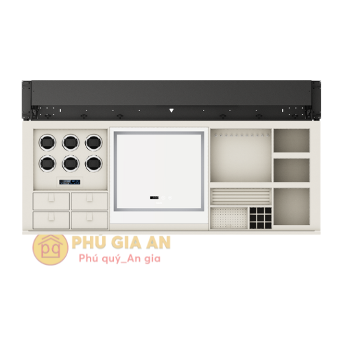 Với cơ chế nâng hạ tự động, khi không có nhu cầu sử dụng, toàn bộ phần tủ chứa đồ sẽ được thu gọn và ẩn mình hoàn hảo vào bên trong kệ hoặc tường. Điều này giúp giải phóng không gian, tạo cảm giác thoáng đãng và gọn gàng cho căn phòng, đặc biệt hữu ích cho các căn hộ cao cấp hoặc phòng ngủ master muốn tối giản hóa nội thất.